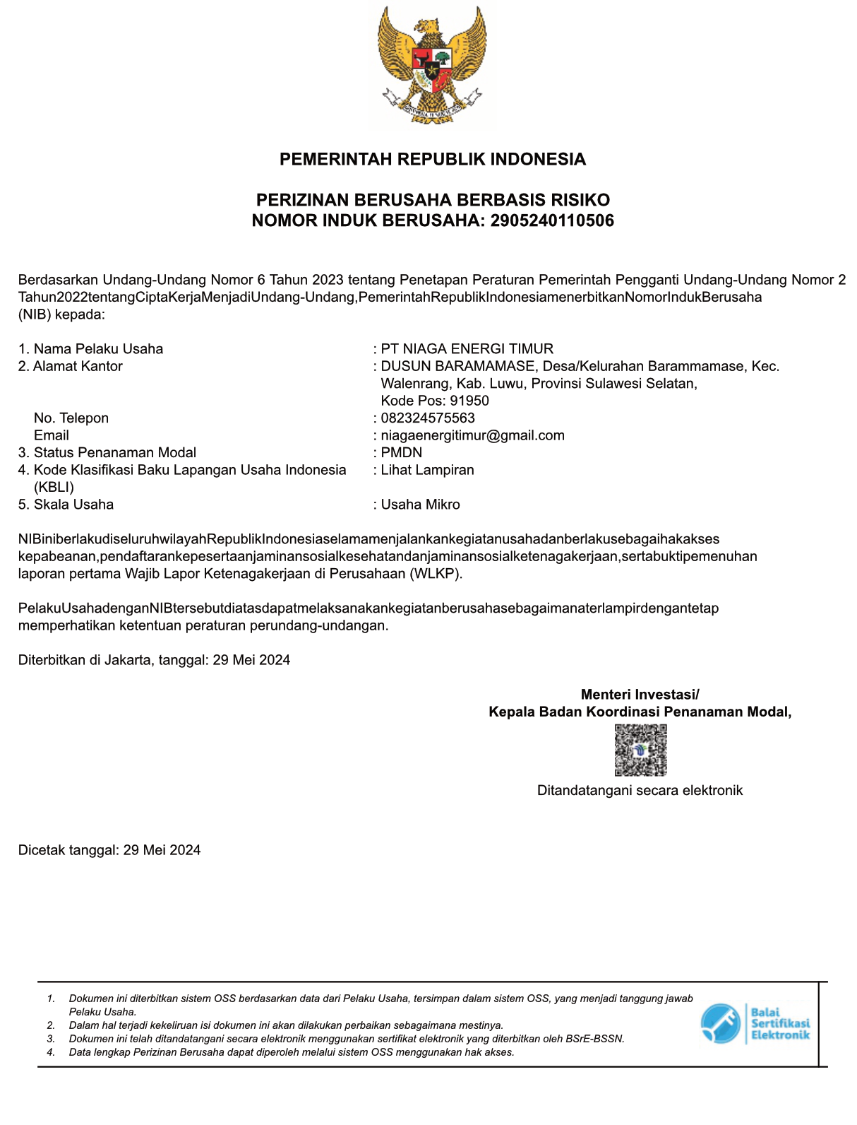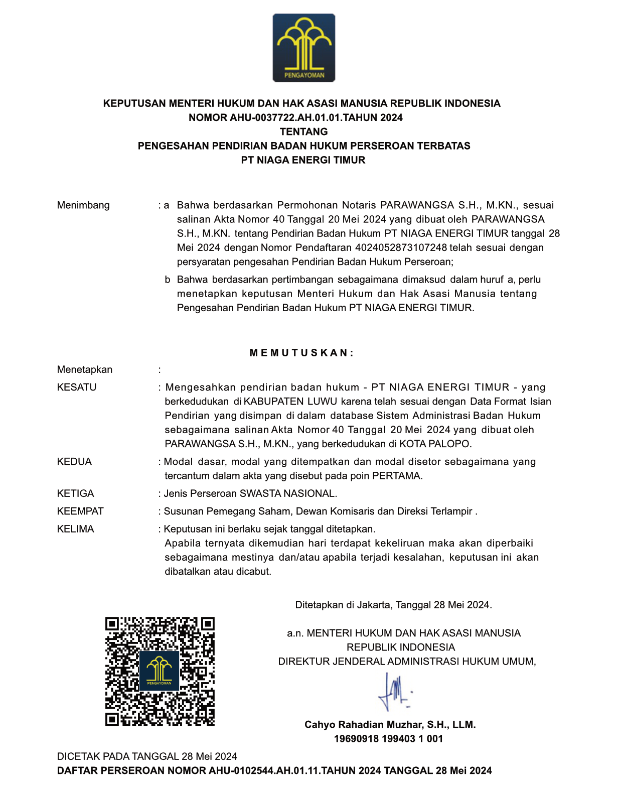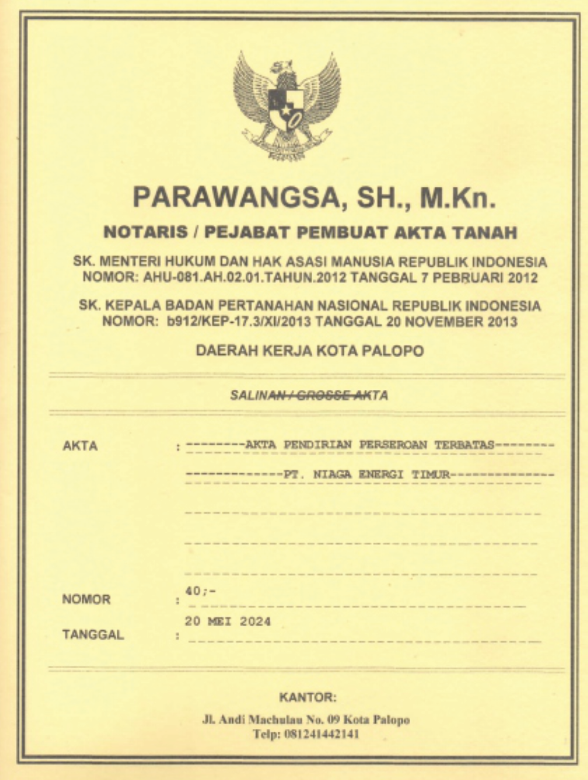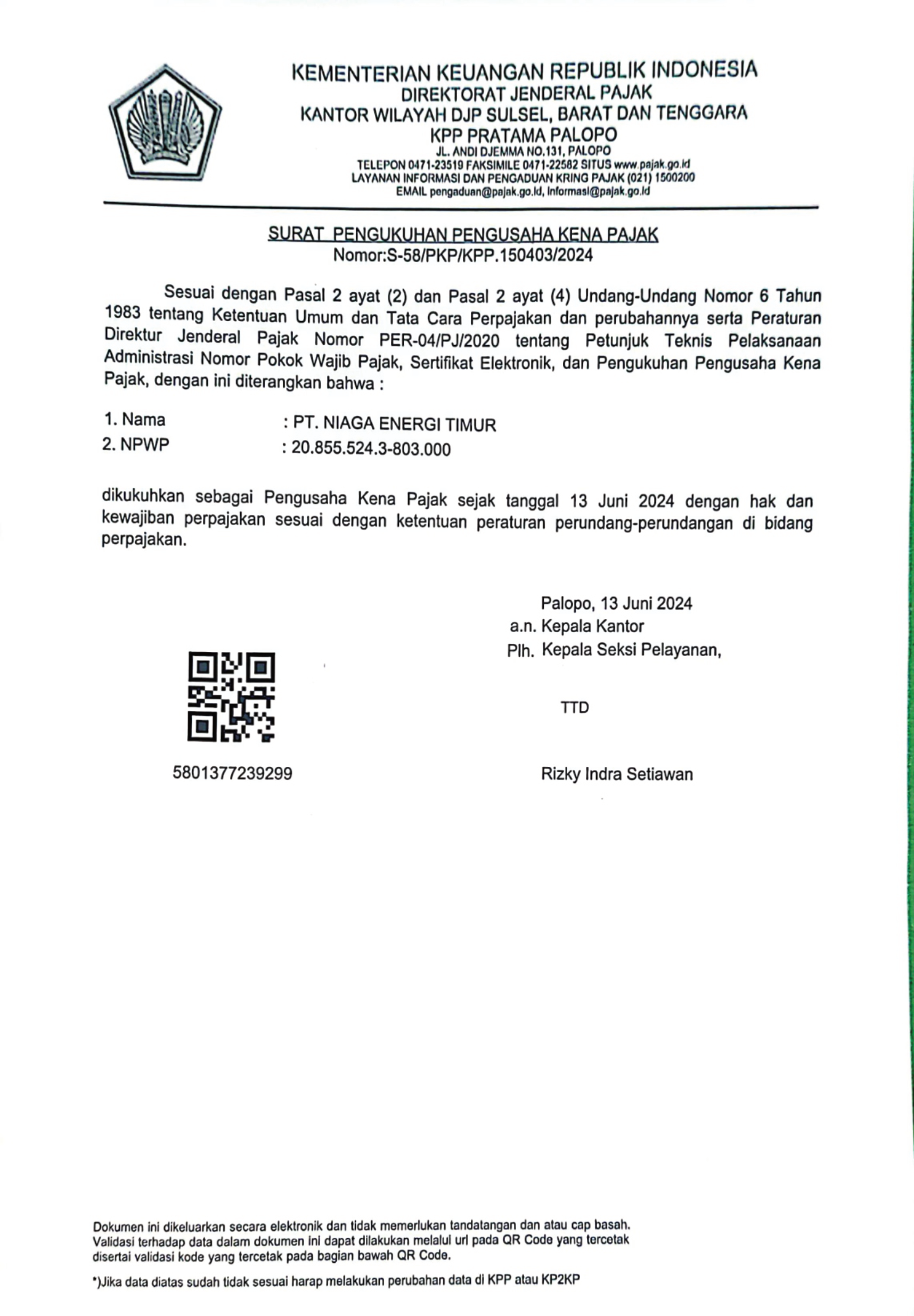PT. Niaga Energi Timur, berdiri sejak tahun 2024 di